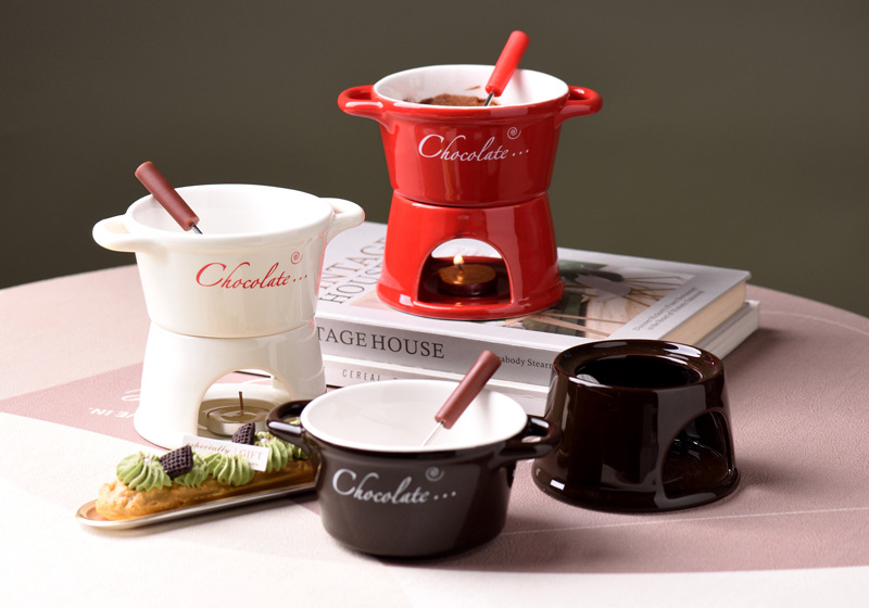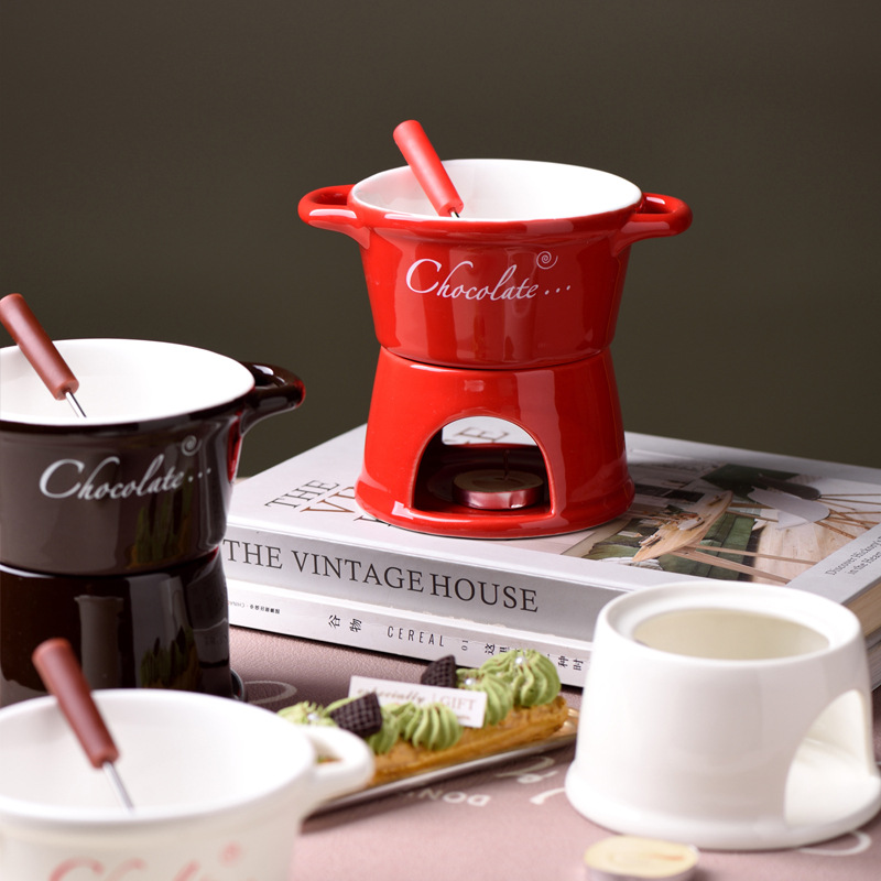 Hot Pot Cup Binaural Ceramic Chocolate Melting Furnace Cheese Heating